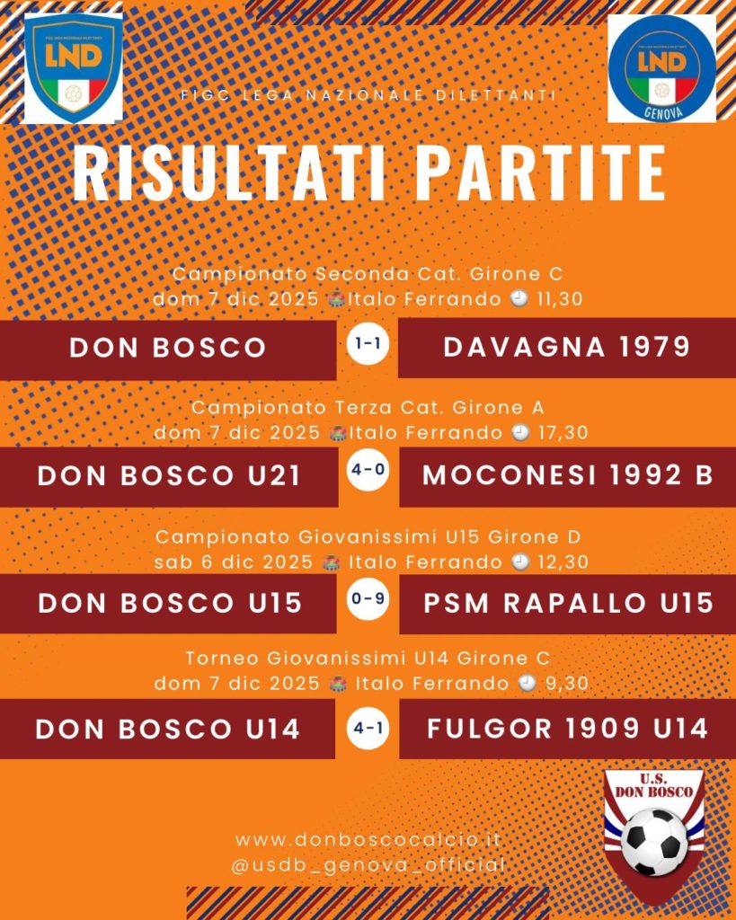 Tags:1945, 2025, 2025/2026, campionato, don bosco, donboscocalcio, genova, giovanissimi, gironeA, gironeC, gironeD, instagram, liguria, lnd, primasquadra, provinciali, riposo, risultati, sampierdarena, seconda, settoregiovanile, terza, torneo, U14, U15, U21, Under 14, Under 15, Under 21