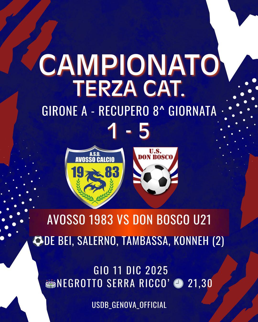 Tags:1945, 2025, 2025/2026, 80, 80annidipassione, 80vogliadidonbosco, avosso, avosso1983, campionato, don bosco, donboscocalcio, genova, gironeA, infrasettimanale, instagram, liguria, lnd, negrotto, recupero, rinviata, risultati, sampierdarena, sospensione, terza, U21, Under 21