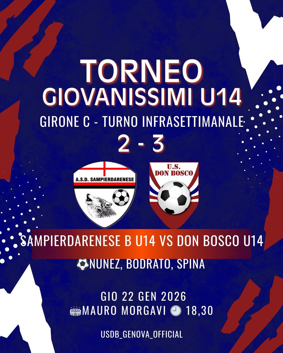 Tags:1945, 2025/2026, 2026, 80, 80annidipassione, 80vogliadidonbosco, campionato, derby, don bosco, donboscocalcio, genova, giovanissimi, gironeC, infrasettimanale, instagram, liguria, lnd, provinciali, risultati, sampierdarena, settoregiovanile, torneo, U14, Under 14