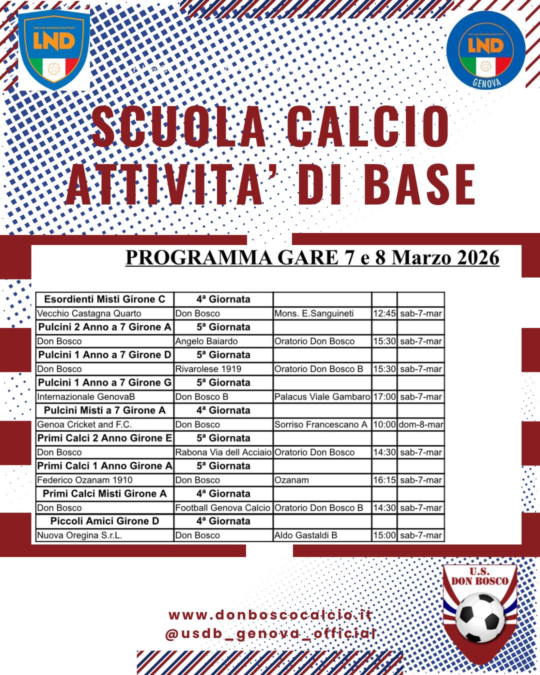 Quarta e quinta giornata per l’attività di base: tutte in campo le nostre squadre. I Pulcini Misti incontrano il Genoa CFC. USDB