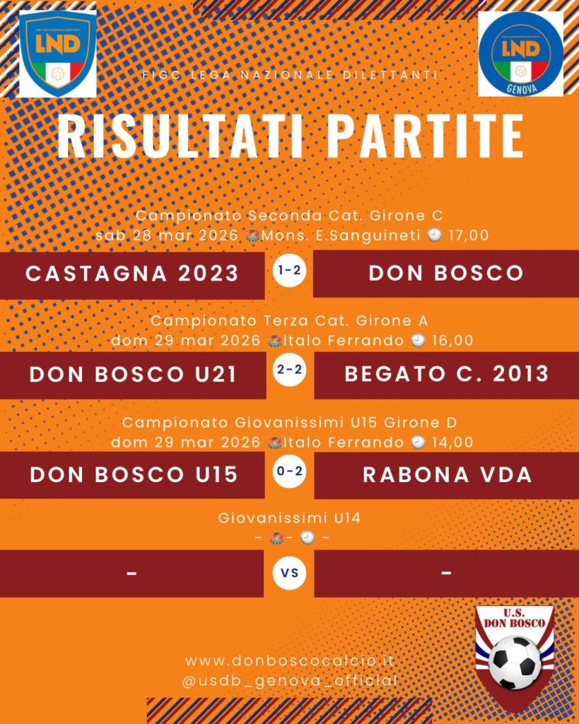 Tags:1945, 2025/2026, 2026, campionato, don bosco, donboscocalcio, genova, giovanissimi, gironeA, gironeC, gironeD, instagram, liguria, lnd, primasquadra, provinciali, risultati, sampierdarena, seconda, settoregiovanile, terza, torneo, U14, U15, U21, Under 14, Under 15, Under 21