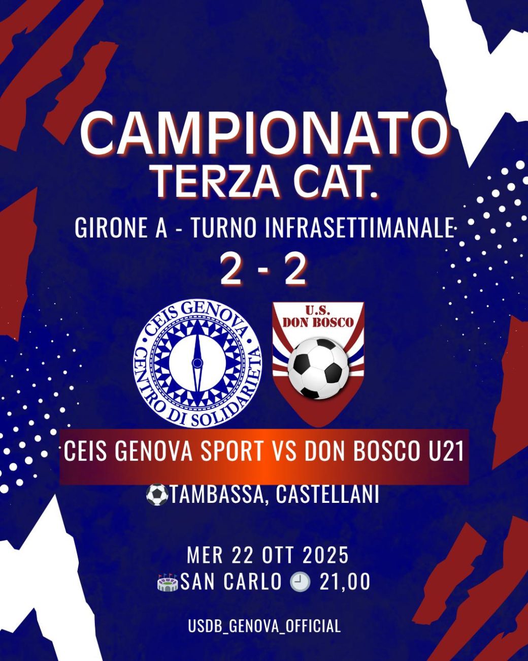 Giusto pareggio (2-2) della squadra Under 21 🆚 Ceis Genova Sport al “San Carlo” di Voltri nel turno infrasettimanale di campionato