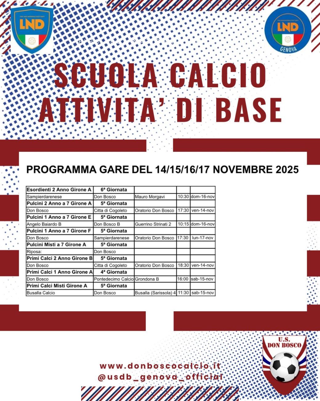Scuola Calcio: le gare dal 14 al 17 novembre