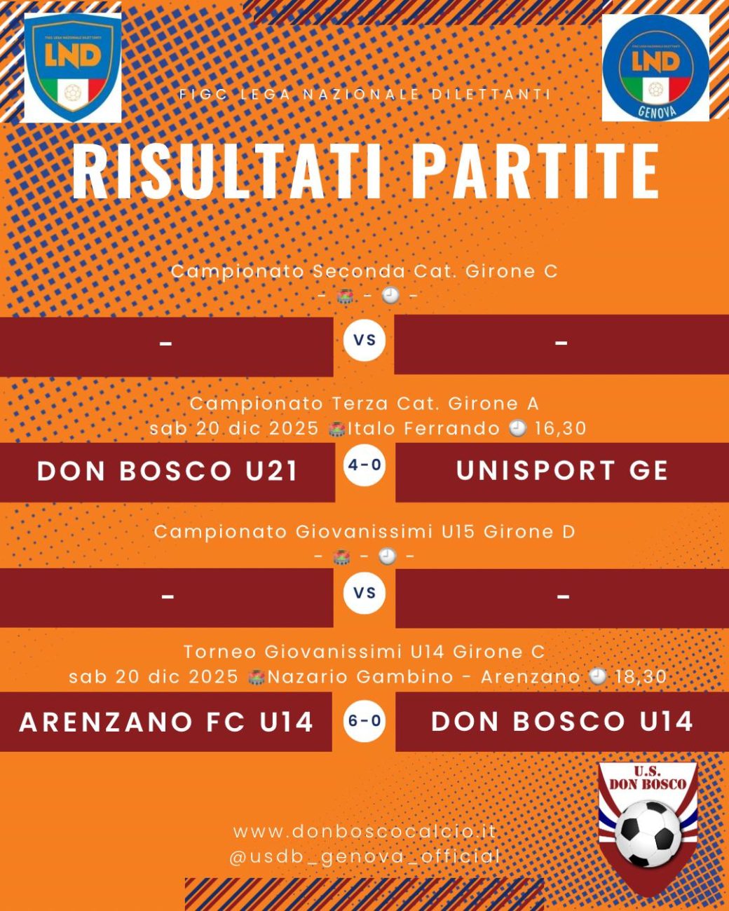 La Under 21 vince 4-0 🆚 Unisport Genova nell’ultima partita dell’anno al Ferrando. I Giovanissimi U14 cedono in trasferta alla corazzata Arenzano, capolista del campionato.