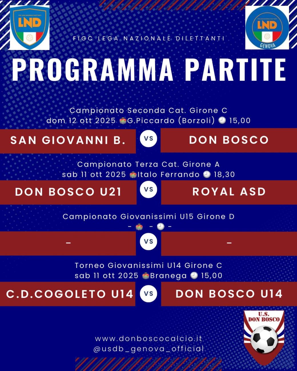 Prima squadra a Busalla con Pontedecimo. Juniores B a Sant’Eusebio. I Giovanissimi ospitano il Multedo